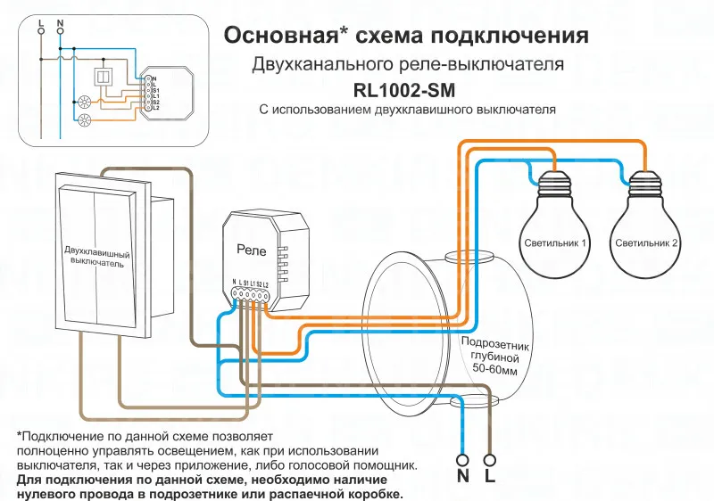 Wi-Fi реле-выключатель двухканальное Denkirs 2x1150Вт/150Вт для LED RL1002-SM купить в Сергиевом Посаде по лучшей цене