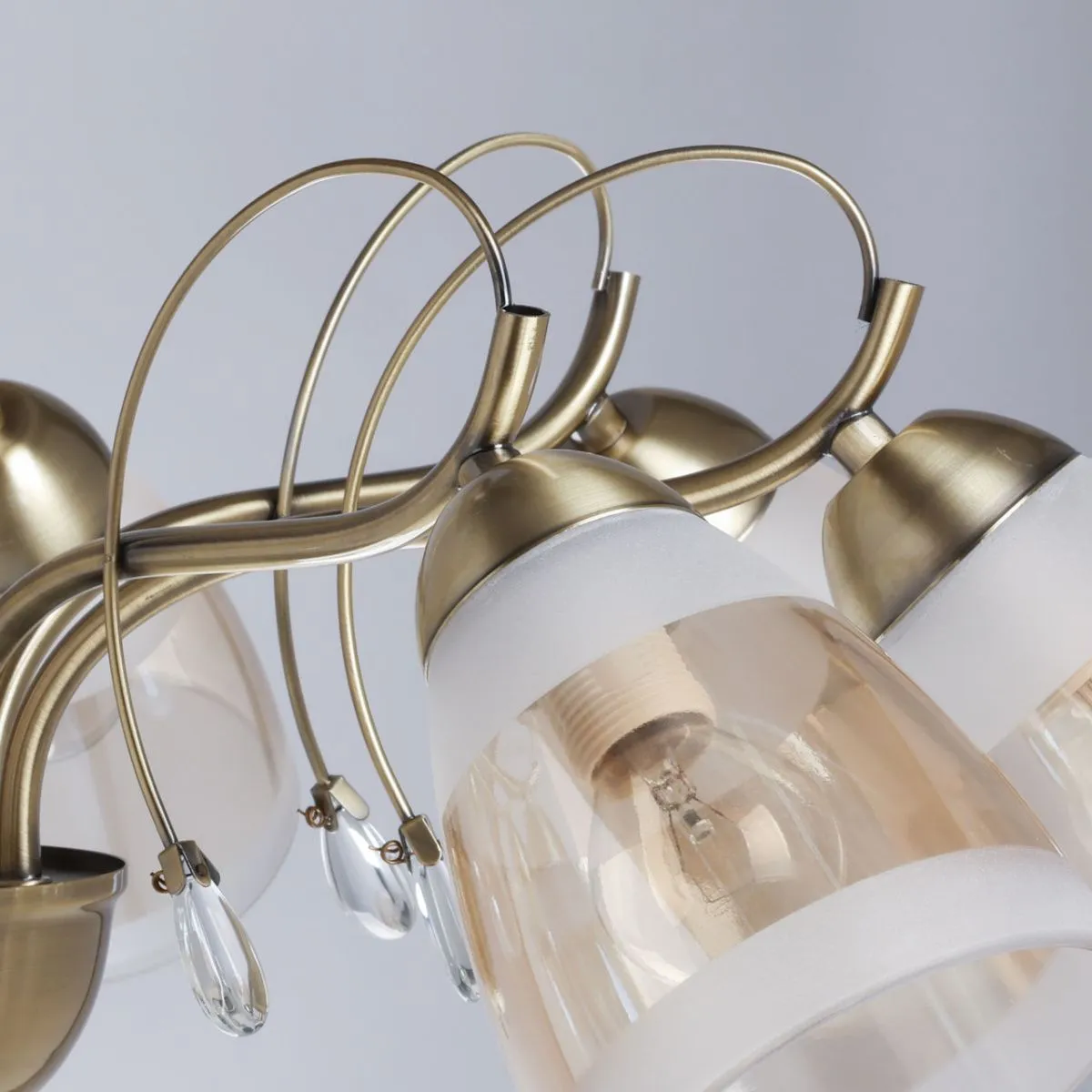 Основание/ металл/ античная бронза Плафон/ стекло/ матовое, шампань Декор/ хрустальное стекло/ про