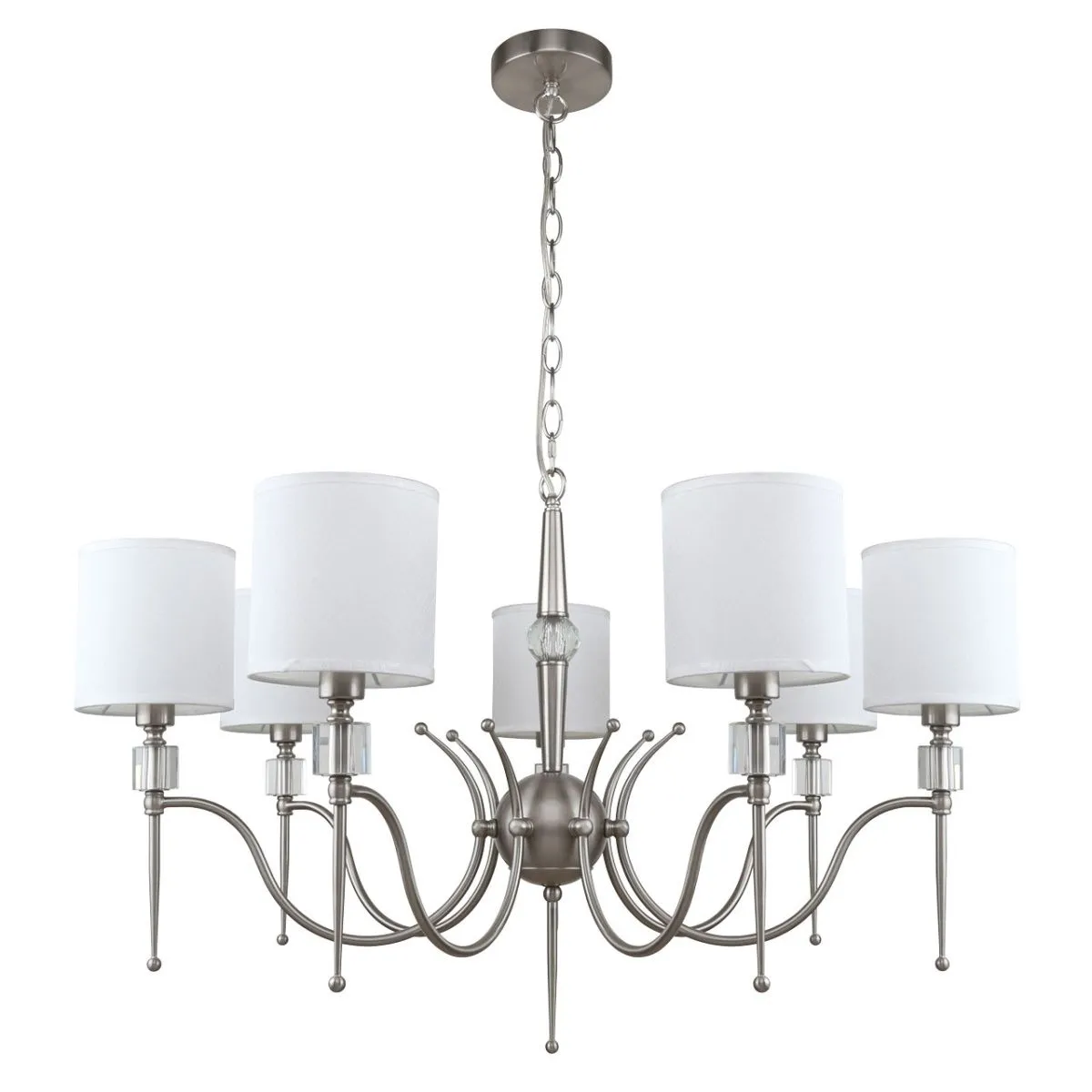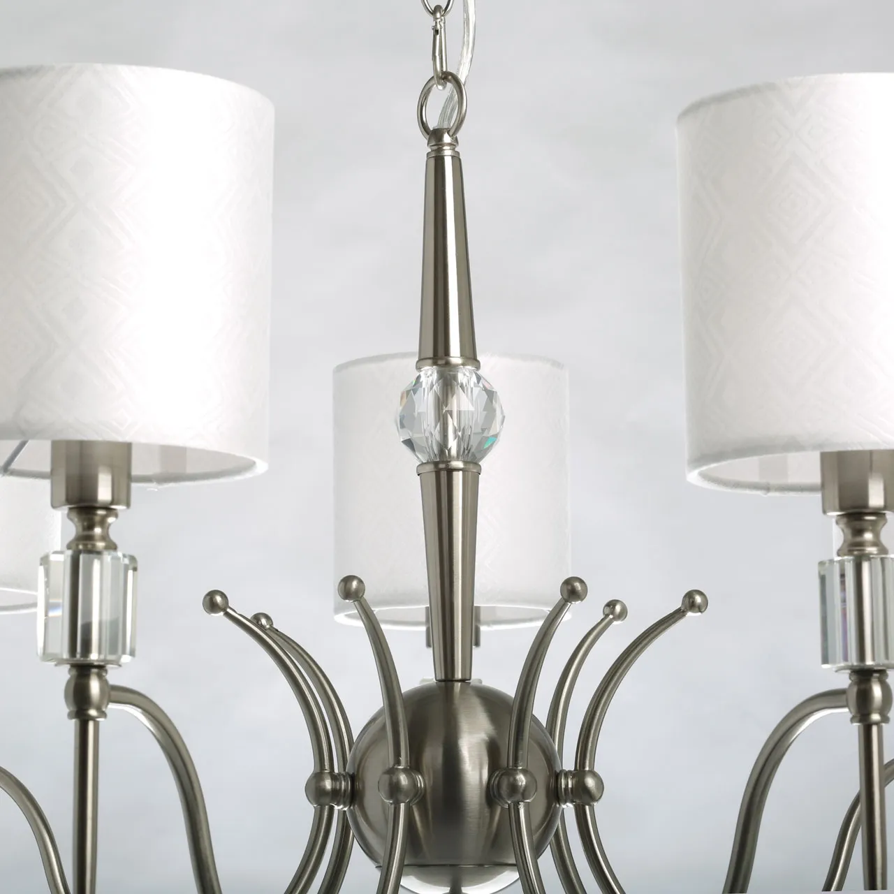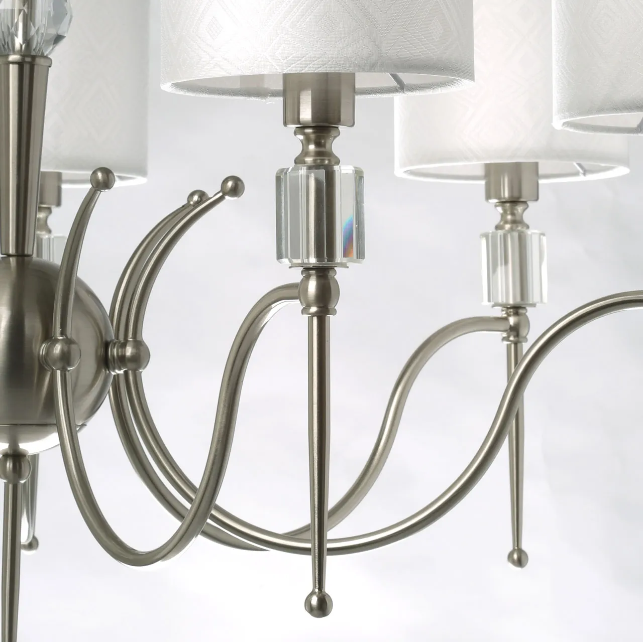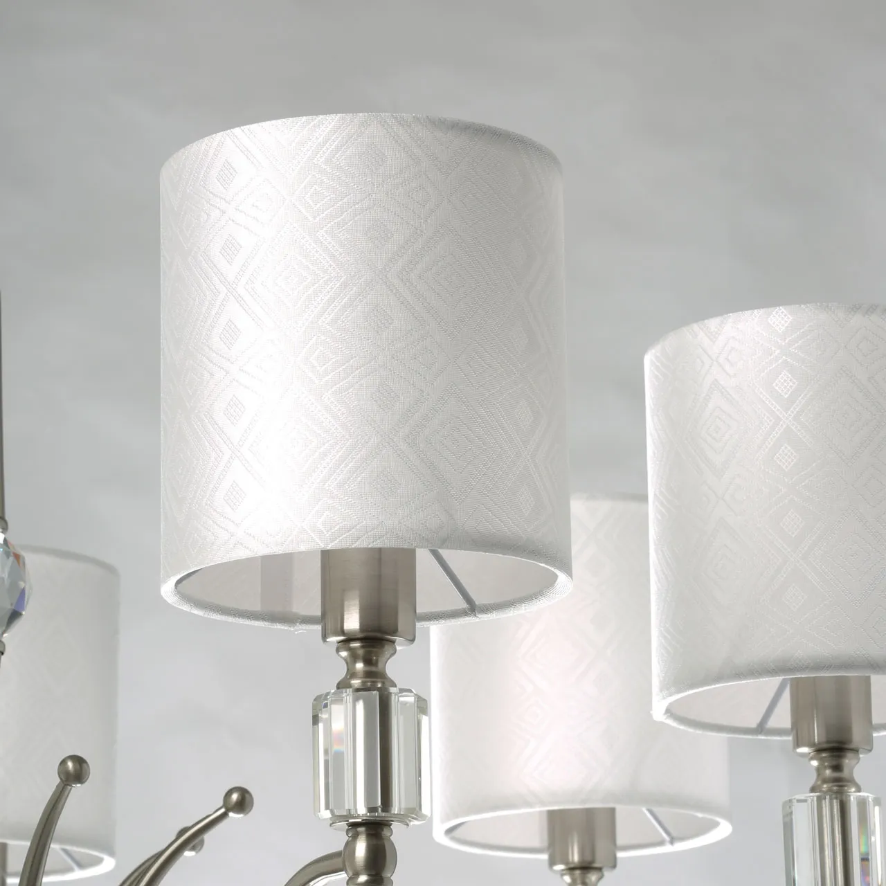 Основание/ металл/ никель Абажур/ текстиль, акрил/ белый, прозрачный Декор/ хрусталь/ прозрачный