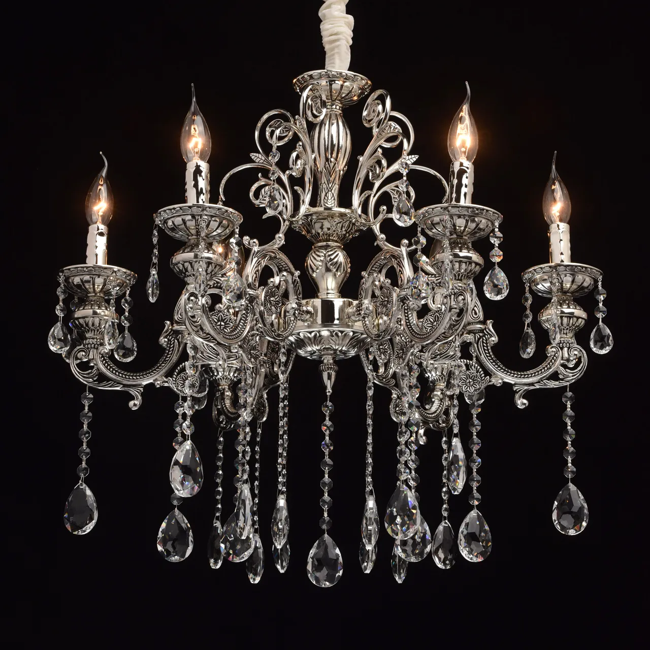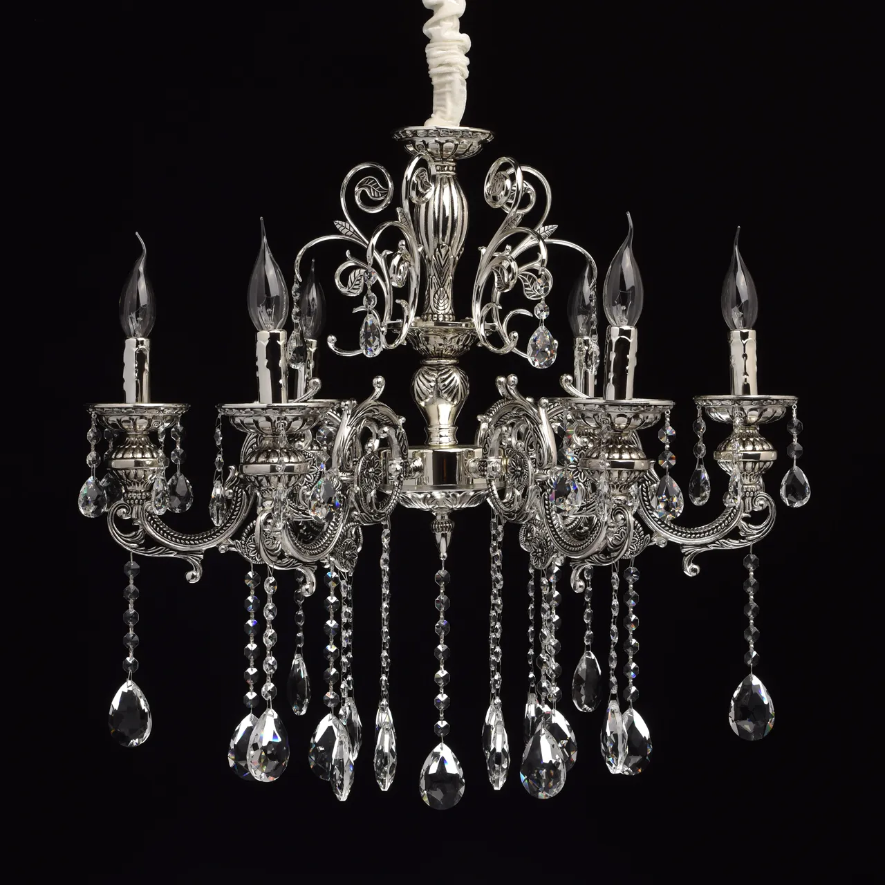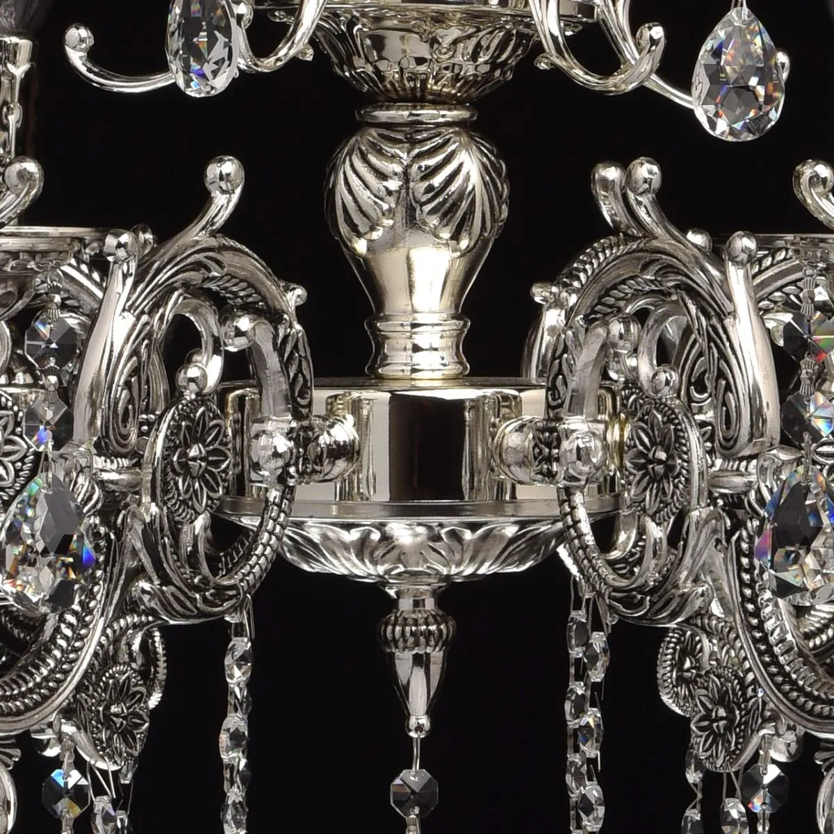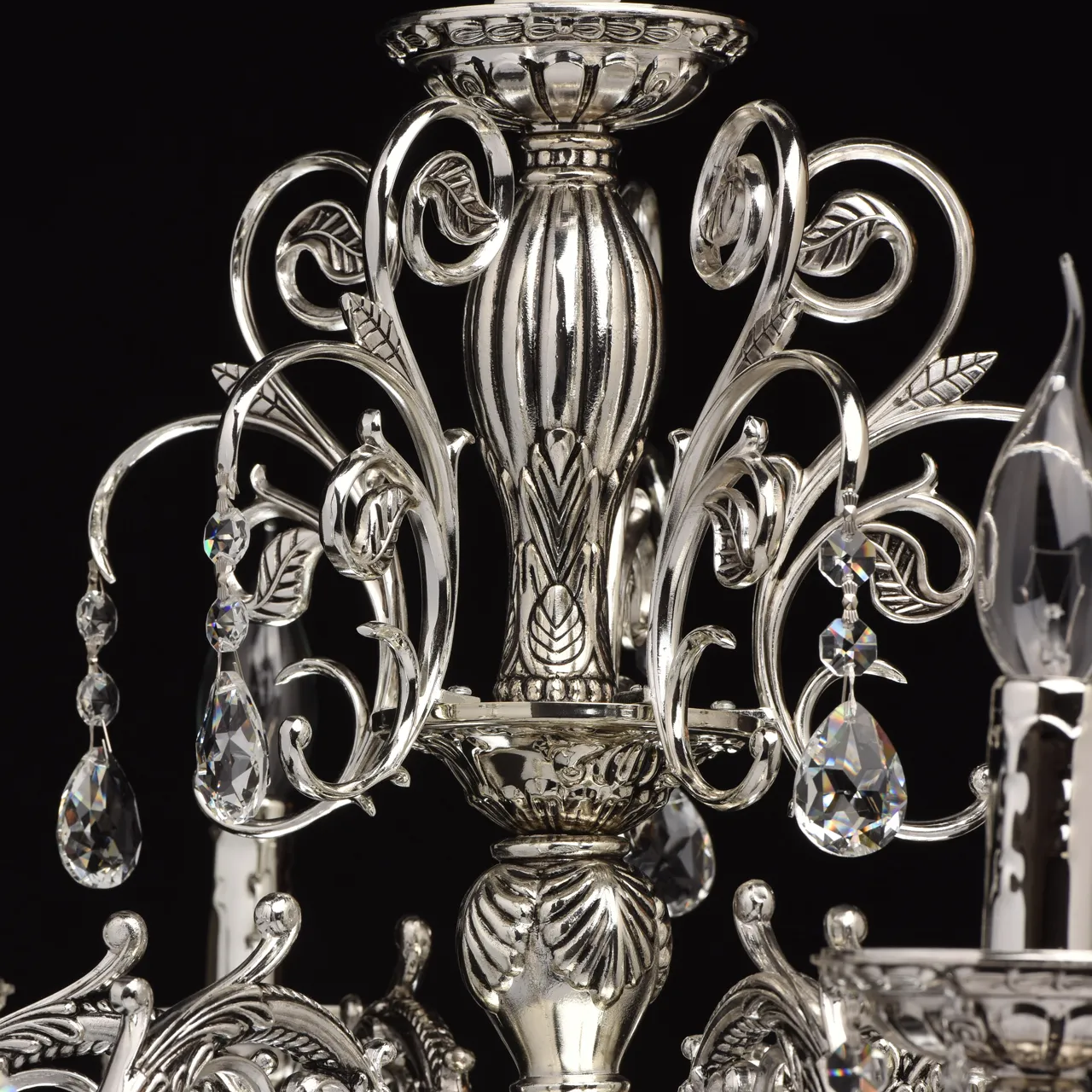 Металлическое основание серебряного цвета с патиной. Декор - хрусталь