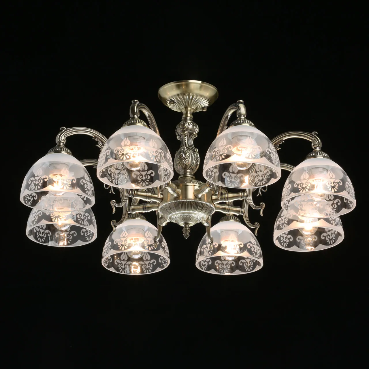 Основание/ металл, сплав алюминия с цинком/ античная бронза Плафоны/ стекло/ матированное, прозрачн