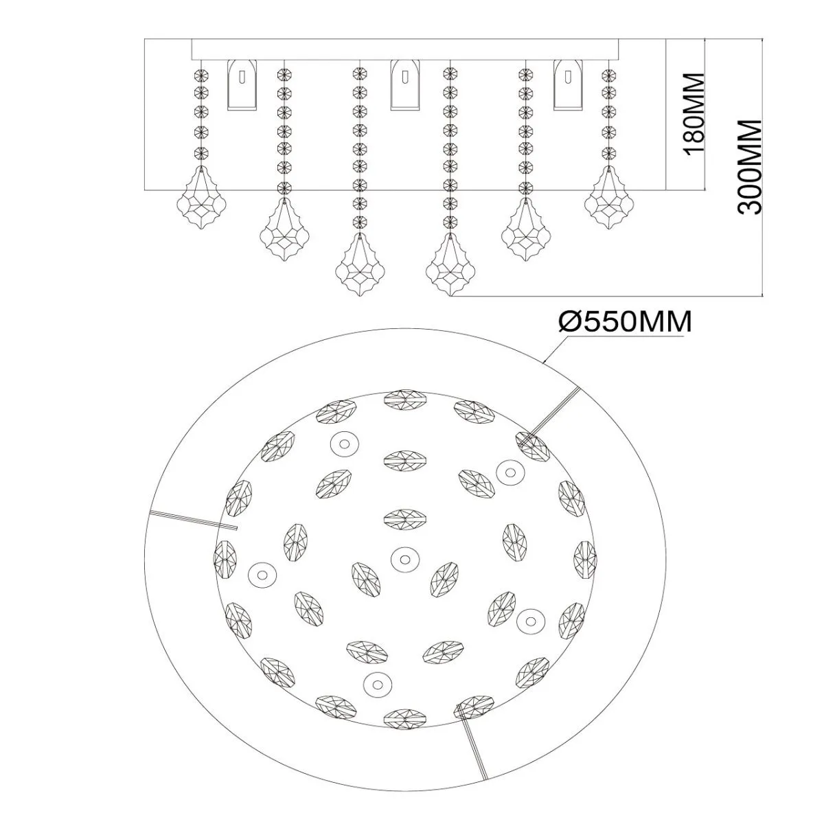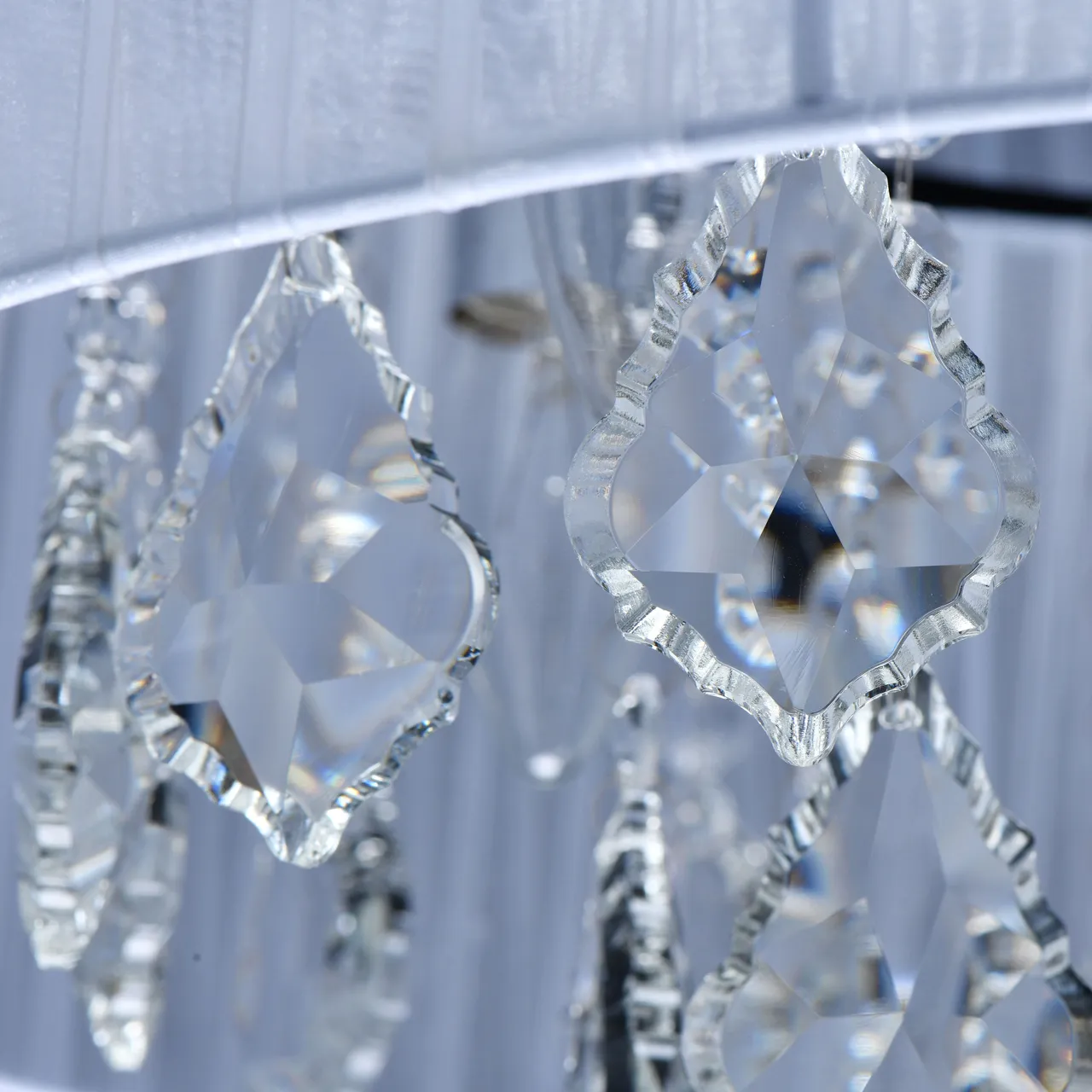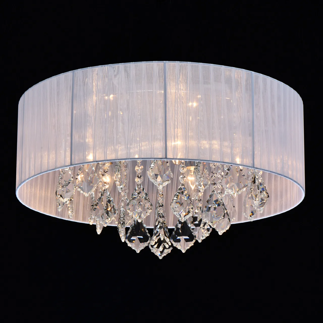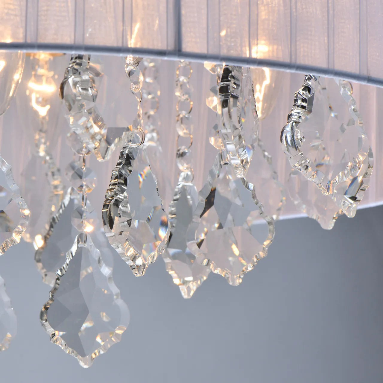 Основание/металл/хром Плафон/органза/белый Декор/хрусталь/прозрачный