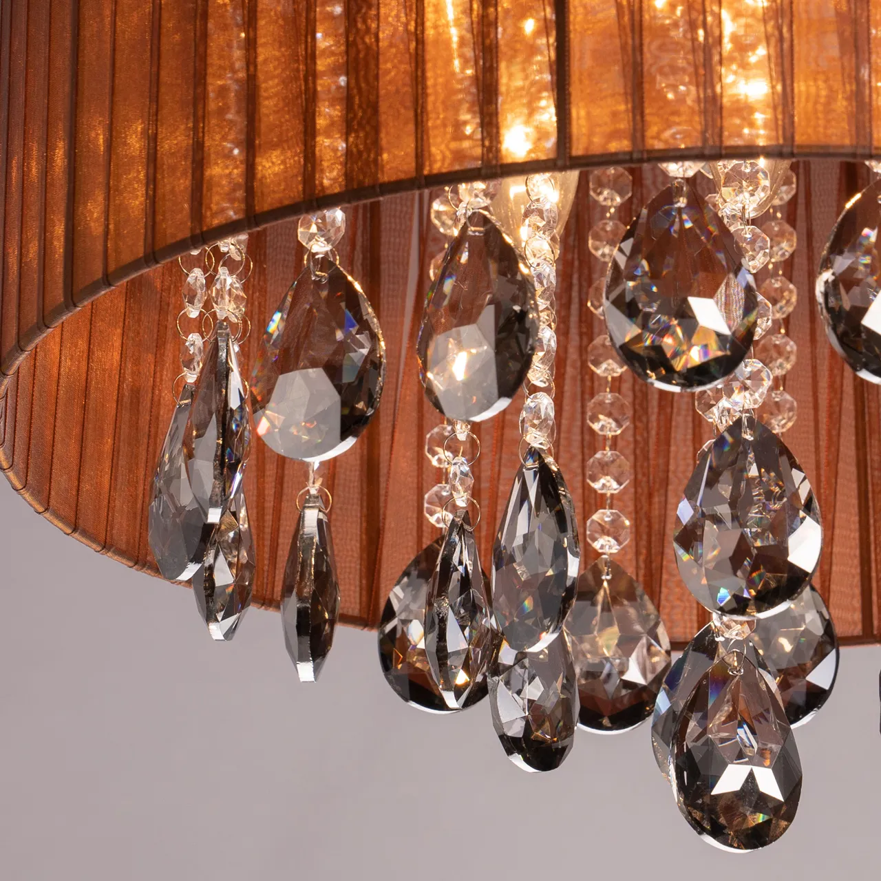 основание/металл/хром плафон/лента /коричневый декор/хрусталь/прозрачный +дымчатый