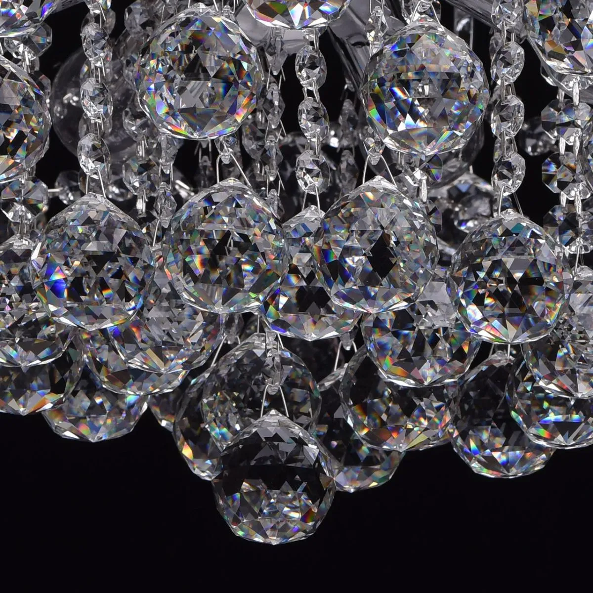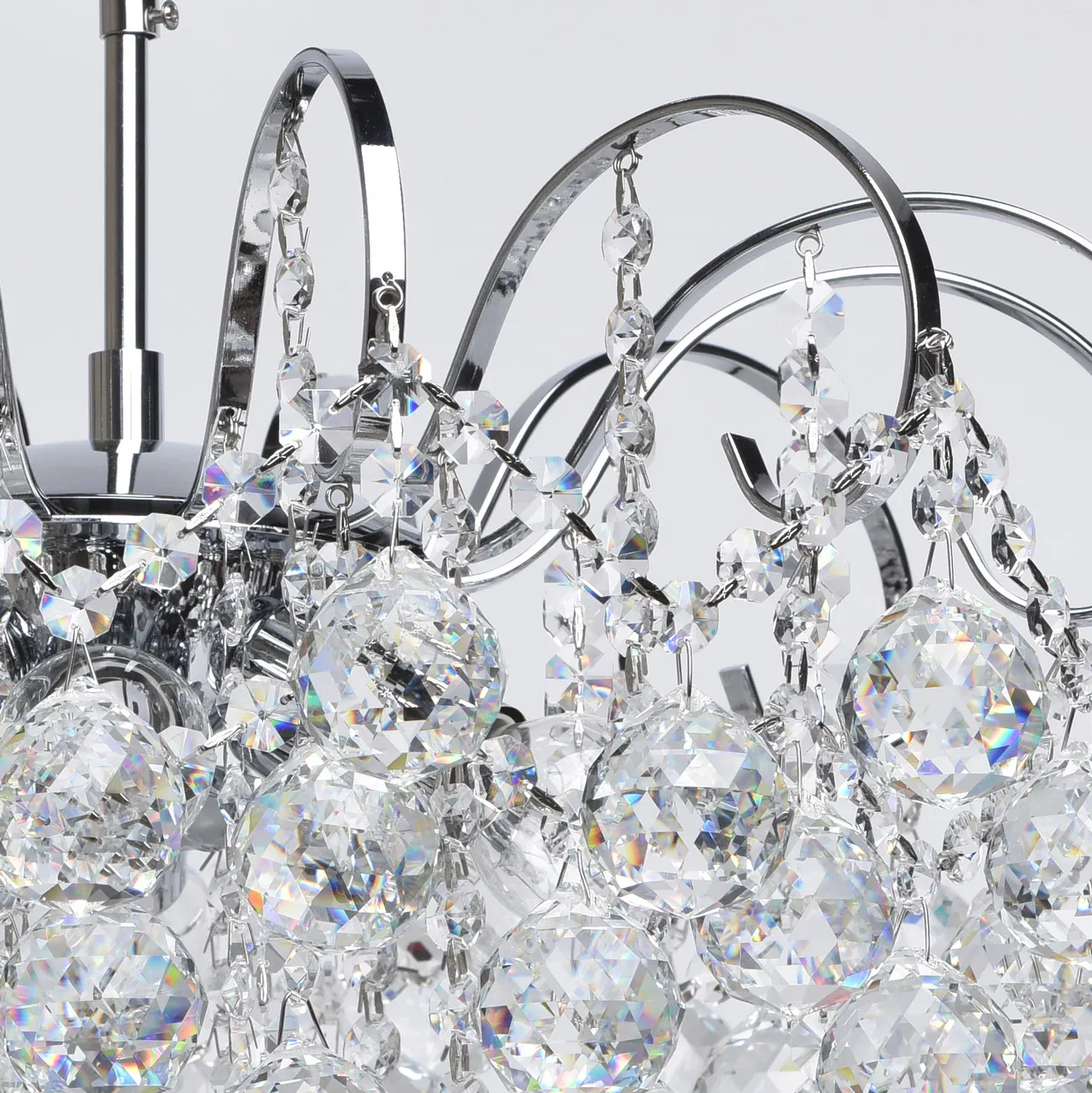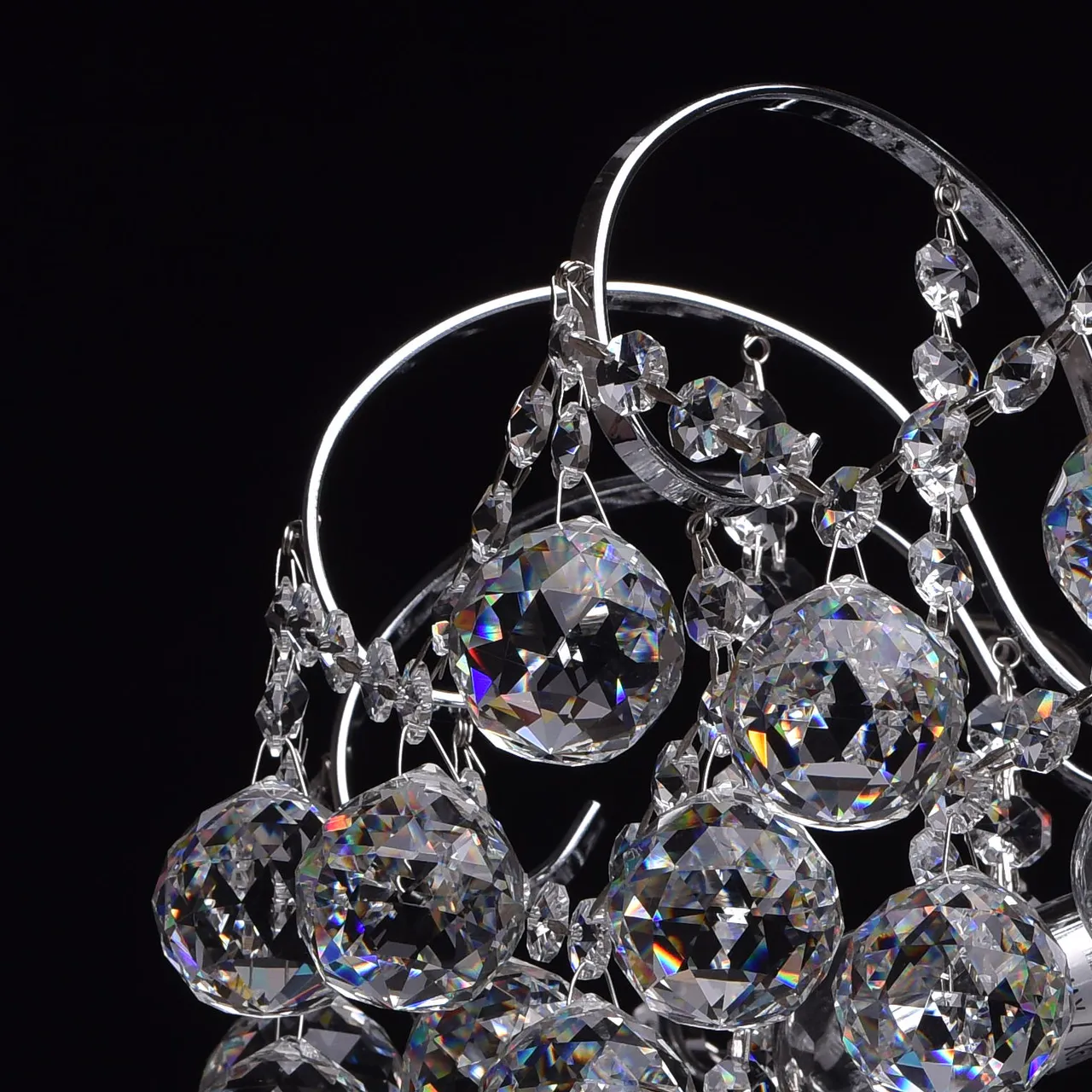 Металлическое основание цвета хрома, декоративные подвески из хрусталя
