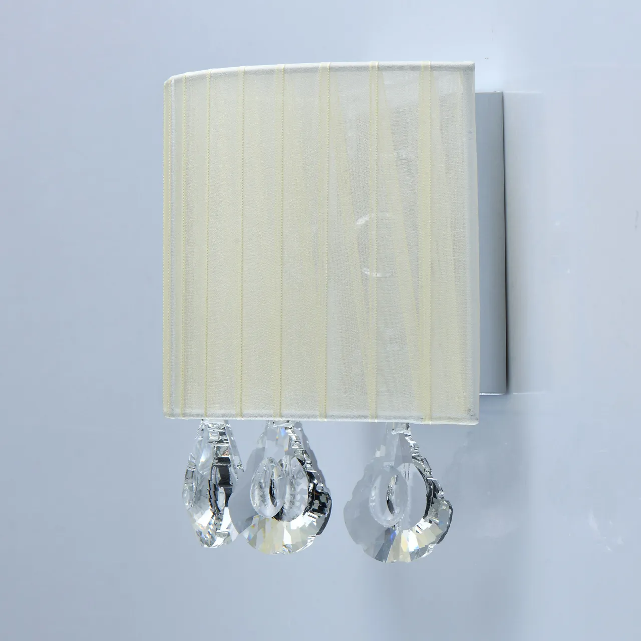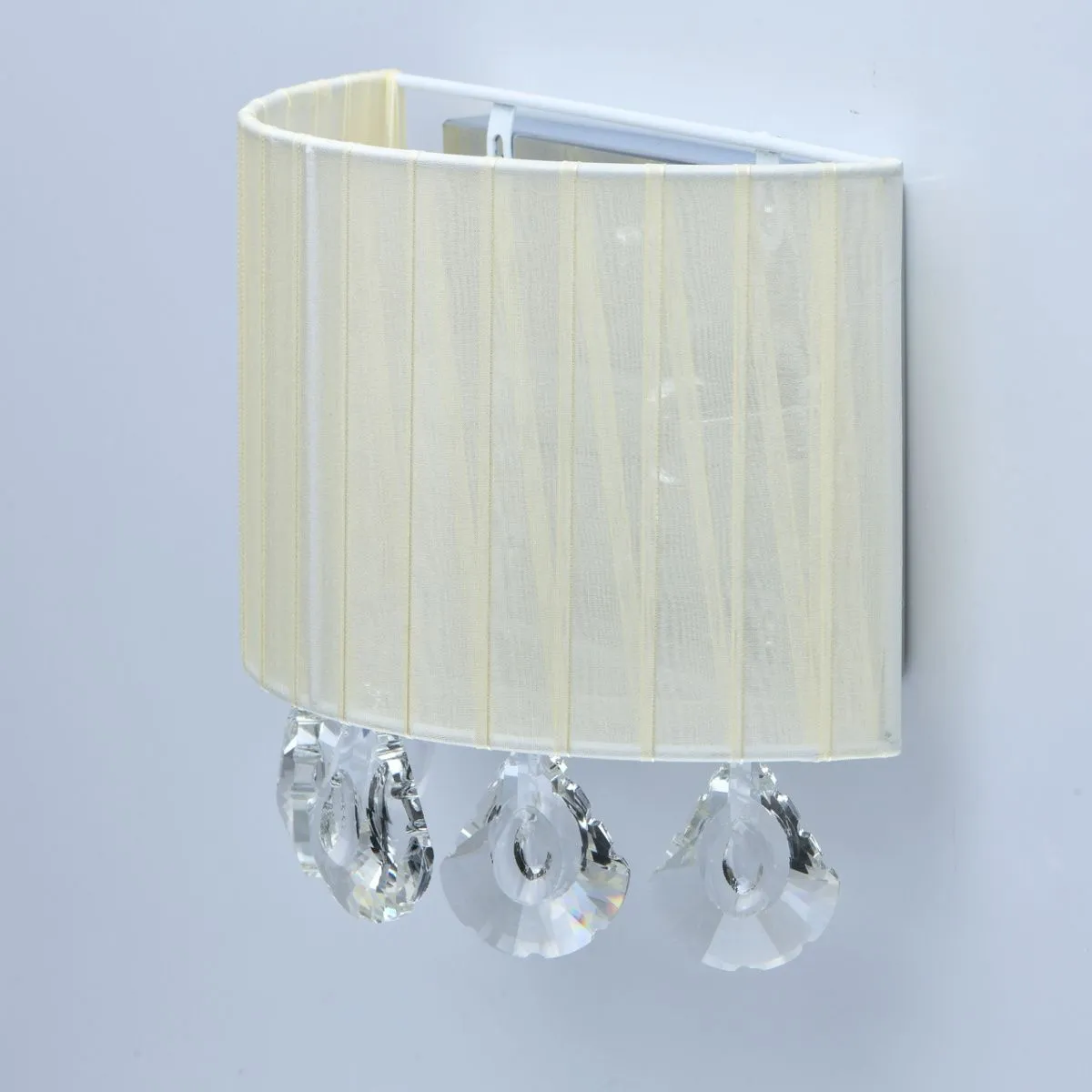Основание/металл/хром Плафон/органза/бежевый Декор/хрусталь/прозрачный