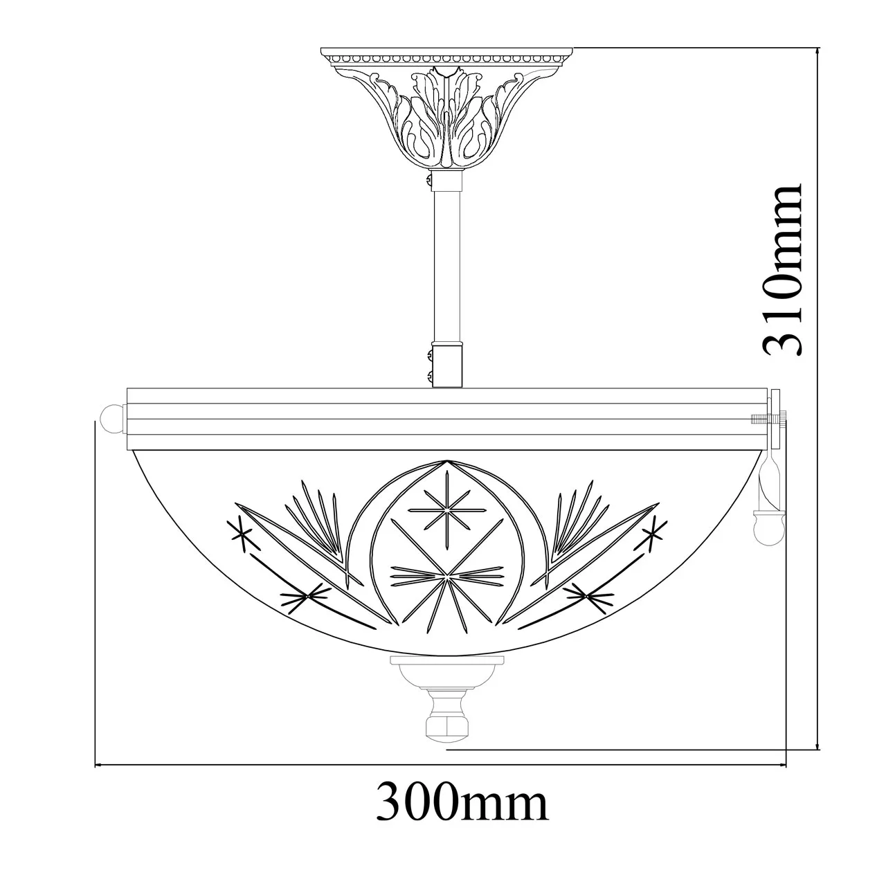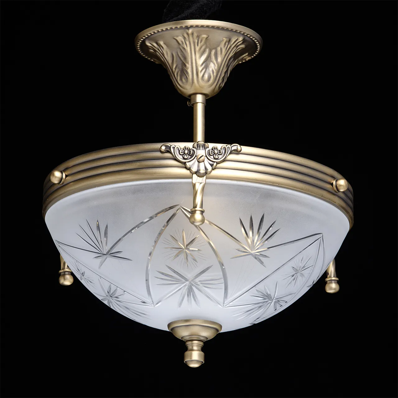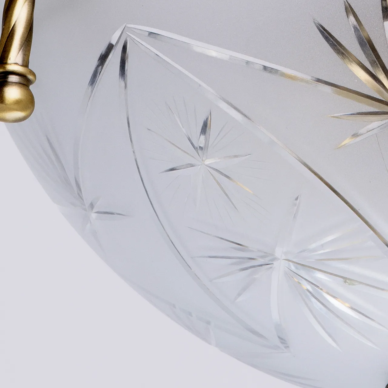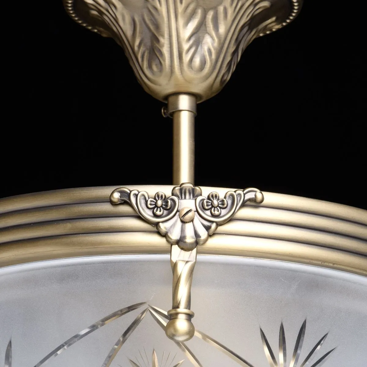 Алюминиевое основание цвета античной бронзы, плафон из матового стекла с резным узором.